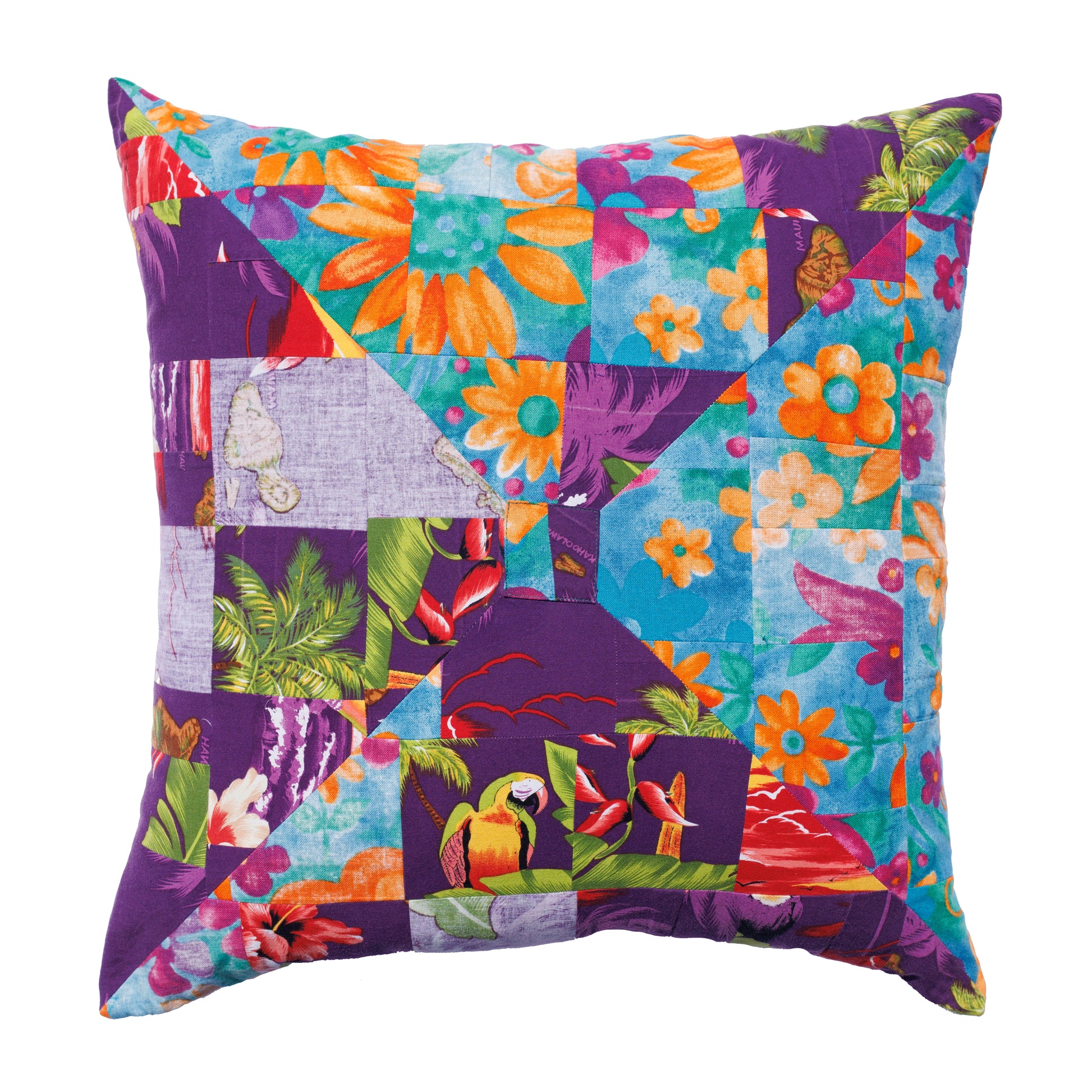 This one-of-a-kind patchwork assemblage pillow was created using vintage fabric remnants and is backed with 100% hemp fabric.