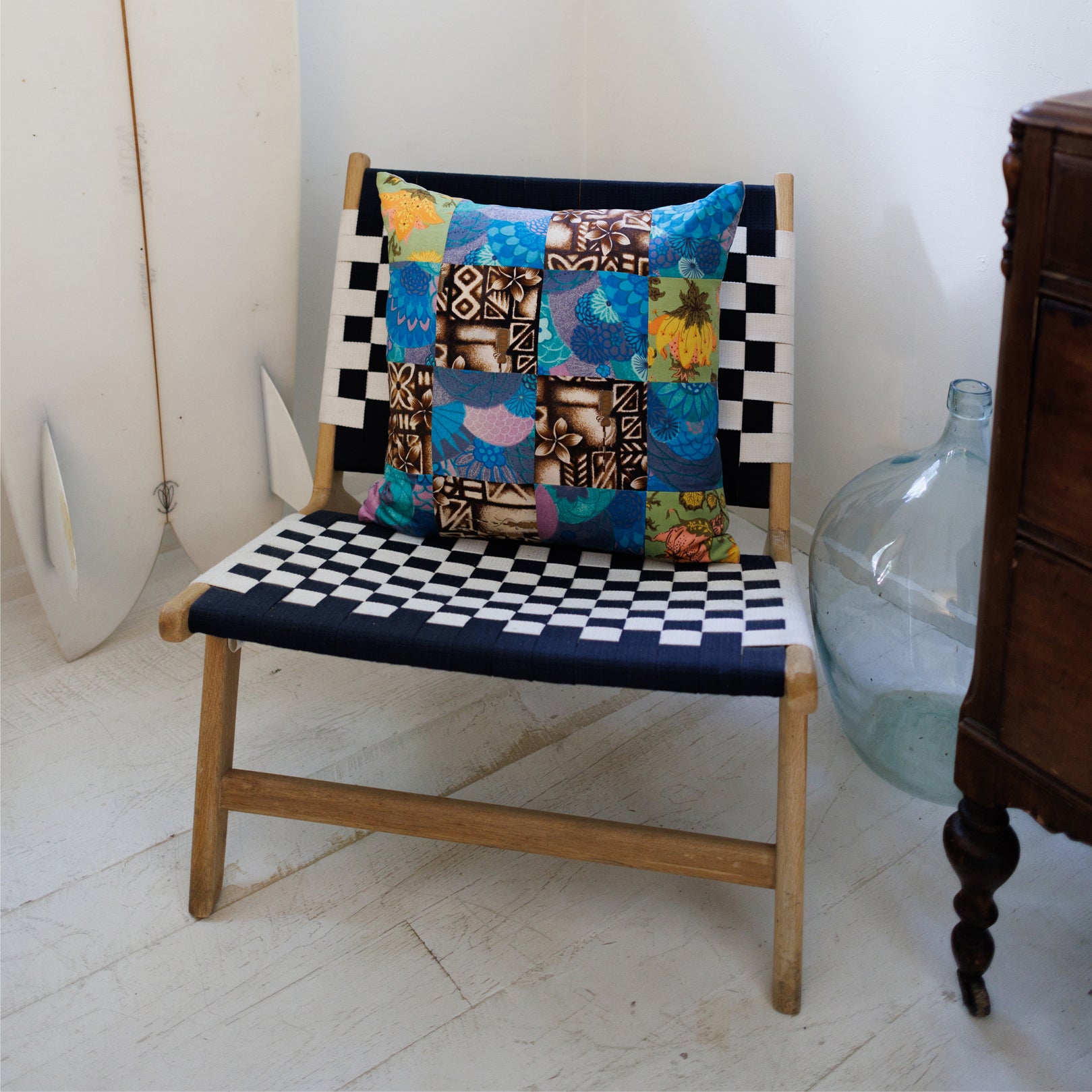 This one-of-a-kind patchwork assemblage pillow was created using vintage fabric remnants and is backed with 100% hemp fabric.